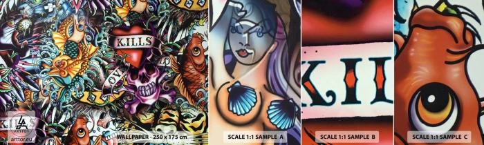 Prøve Fototapet Selvklæbende Deluxe Sticker - En tatovørers drøm - Graffiti, Vægmaleri, Stykke - 100x30 cm