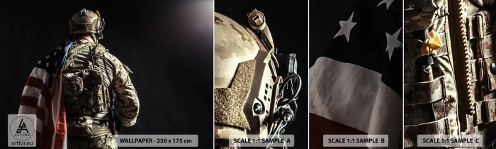 Prøve Fototapet Selvklæbende Deluxe Sticker - Det er grunden til, at - Soldat, Amerikansk Flag, Kommando - 100x30 cm