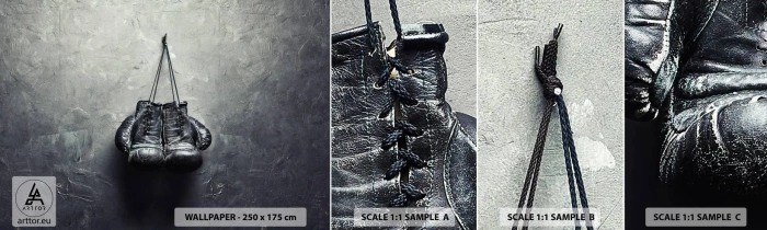 Prøve Fototapet Selvklæbende Deluxe Sticker - En tid med kamp og en tid med fred - Boks, Boksehandsker, Årgang - 100x30 cm