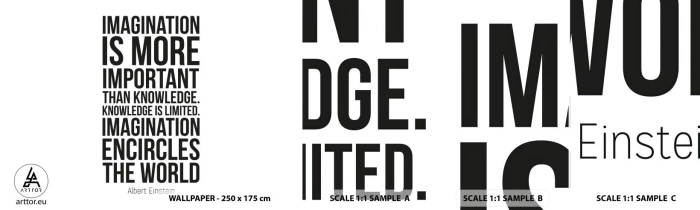 Prøve Fototapet Selvklæbende Deluxe Sticker - Einstein om fantasiens kraft - Typografi, Bekræftelse, Maxim - 100x30 cm