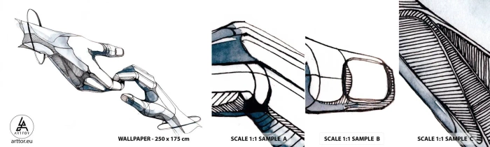 Prøve Fototapet Selvklæbende Deluxe Sticker - En god gestus - Abstraktion, Hænder, Grafik - 100x30 cm