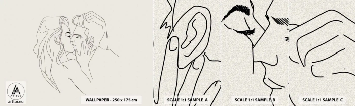 Prøve Fototapet Selvklæbende Deluxe Sticker - Forviklet i følelser - Grafik, Forelsket par, Kys - 100x30 cm