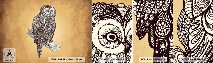 Prøve Fototapet Selvklæbende Deluxe Sticker - Indviklede ornamenter af visdom - Ugle, Fugl, Dyr - 100x30 cm