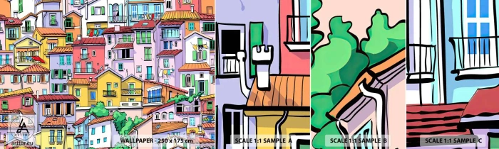 Prøve Fototapet Selvklæbende Deluxe Sticker - Glædelig by - By, Lejehuse, Huse - 100x30 cm
