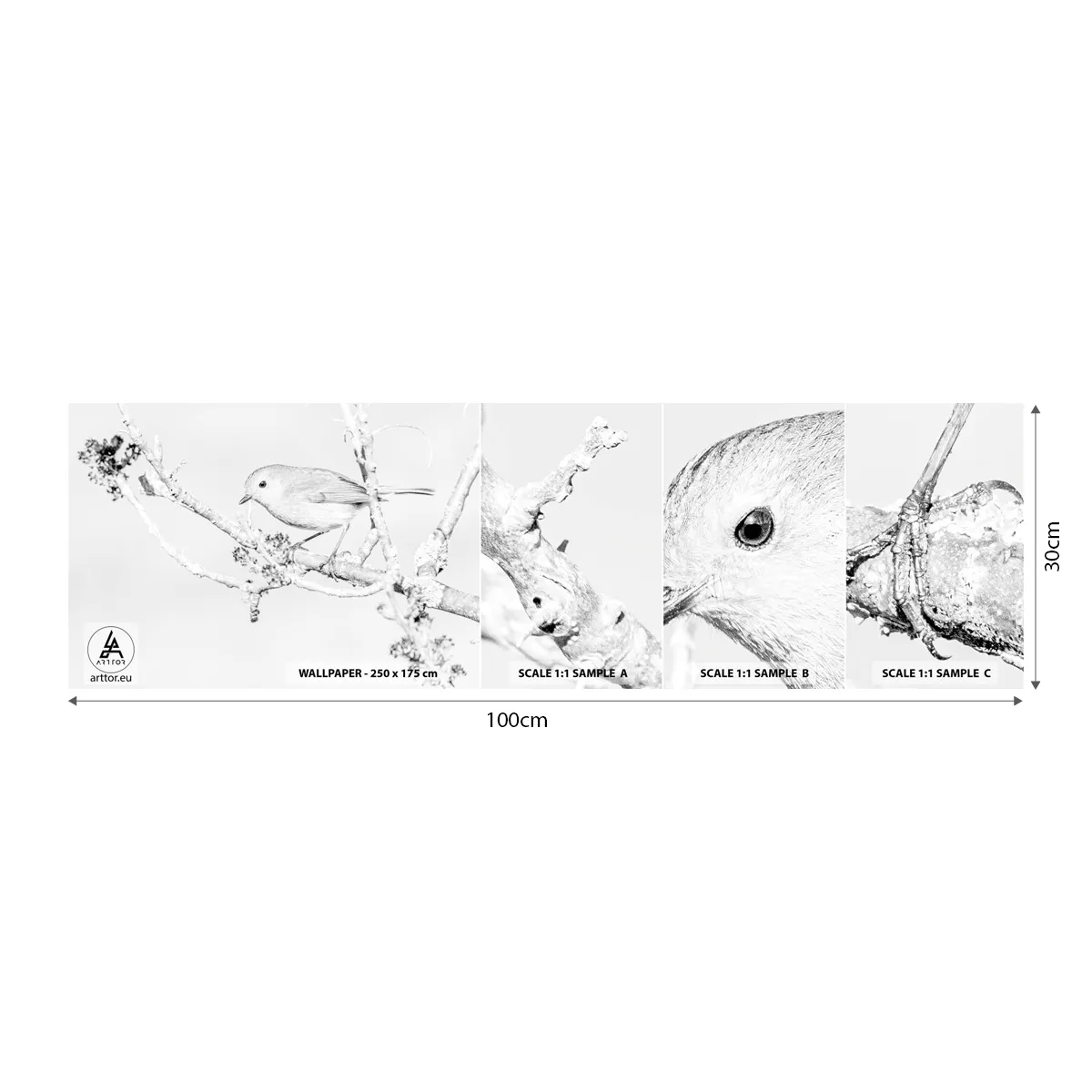 Prøve Fototapet Selvklæbende Deluxe Sticker - Vintermorgen - Lyse, Fugl, Natur - 100x30 cm