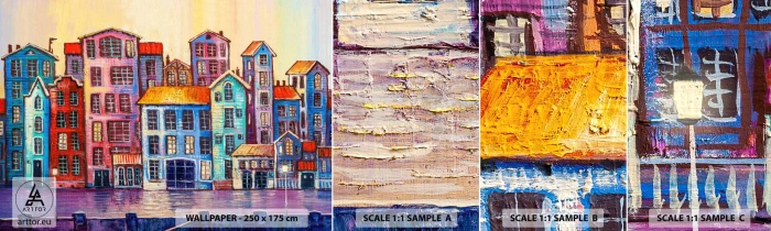Prøve Fototapet Selvklæbende Deluxe Sticker - En by som et eventyr - Stykke, Lejehuse, By - 100x30 cm