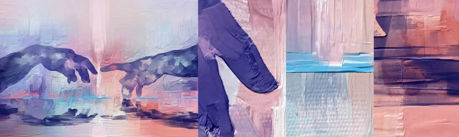 Prøve Fototapet Selvklæbende Deluxe Sticker - Den guddommelige gnist af liv - Hænder, Michelangelo, Stykke - 100x30 cm
