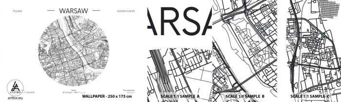 Prøve Fototapet Selvklæbende Deluxe Sticker - Warszawas anatomi - Kort, Warszawa, Polen - 100x30 cm