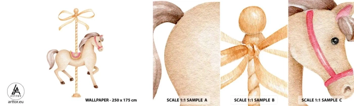 Prøve Fototapet Selvklæbende Deluxe Sticker - Med et yndefuldt trav - Hest, Merry-go-round, Pigeagtig - 100x30 cm