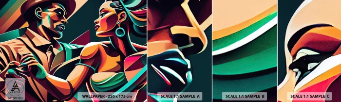 Prøve Fototapet Selvklæbende Deluxe Sticker - I hjertets rytme - Kubisme, Par, Dans - 100x30 cm