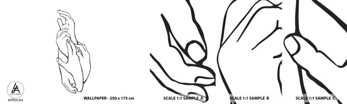 Prøve Fototapet Selvklæbende Deluxe Sticker - God berøring - Hænder, Linje, Minimalisme - 100x30 cm