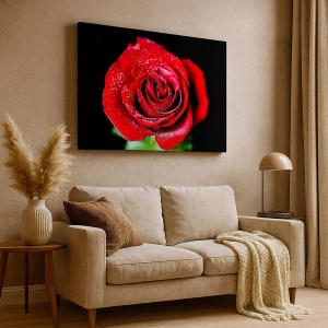Lærredet er spændt op over rammen. Siderne og kanterne trykkes for at danne en fortsættelse af billedet. Maleriet er klar til at blive hængt op på væggen. Hvert produkt har en bøjle, der er fastgjort til rammen, og et samlesæt (skrue + dyvel).