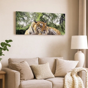 Lærredet er spændt op over rammen. Siderne og kanterne trykkes for at danne en fortsættelse af billedet. Maleriet er klar til at blive hængt op på væggen. Hvert produkt har en bøjle, der er fastgjort til rammen, og et samlesæt (skrue + dyvel).