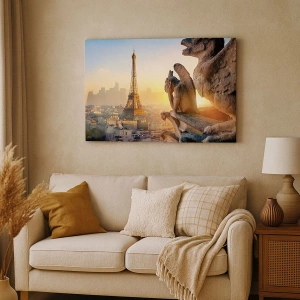 Lærredet er spændt op over rammen. Siderne og kanterne trykkes for at danne en fortsættelse af billedet. Maleriet er klar til at blive hængt op på væggen. Hvert produkt har en bøjle, der er fastgjort til rammen, og et samlesæt (skrue + dyvel).