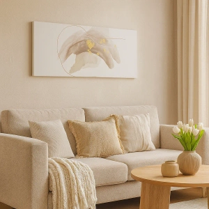 Lærredet er spændt op over rammen. Siderne og kanterne trykkes for at danne en fortsættelse af billedet. Maleriet er klar til at blive hængt op på væggen. Hvert produkt har en bøjle, der er fastgjort til rammen, og et samlesæt (skrue + dyvel).