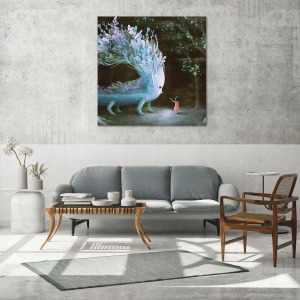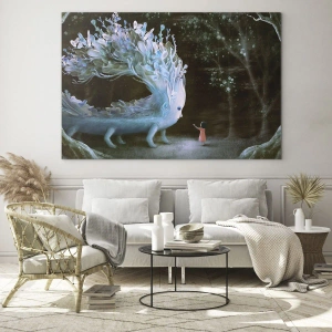 "Fantastisk møde" er en perfekt dekoration til et børneværelse, men også til rum, hvor kreativitet og behovet for drømme dominerer – såsom et kunstners atelier, bibliotek, stue eller afslapningshjørne. Maleriet stimulerer fantasien, inspirerer og inviterer dig til din egen fortolkning af historien, der kunne finde sted i denne magiske skov.