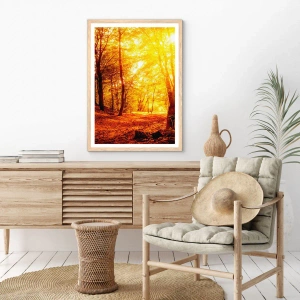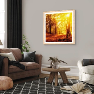 Plakat i ramme af lyst egetræ - Til den gyldne lysning - 60x60 cm