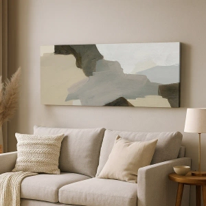 - Dette maleri skildrer abstrakte former i nuancer af beige, brun og grå. En subtil og moderne komposition, der bringer harmoni og stil til minimalistiske interiører. Et ideelt valg for elskere af samtidskunst.