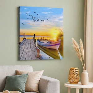 Lærredet er spændt op over rammen. Siderne og kanterne trykkes for at danne en fortsættelse af billedet. Maleriet er klar til at blive hængt op på væggen. Hvert produkt har en bøjle, der er fastgjort til rammen, og et samlesæt (skrue + dyvel).