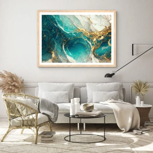 Plakat i ramme af lyst egetræ - Komposition med årer af guld - 50x50 cm