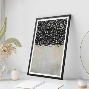 - Plakaten har en abstrakt komposition af sorte linjer på en lys baggrund. Det kontrasterende design giver et moderne og elegant præg til ethvert interiør. En sort ramme medfølger.