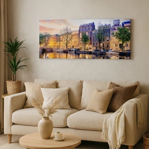 Lærredet er spændt op over rammen. Siderne og kanterne trykkes for at danne en fortsættelse af billedet. Maleriet er klar til at blive hængt op på væggen. Hvert produkt har en bøjle, der er fastgjort til rammen, og et samlesæt (skrue + dyvel).