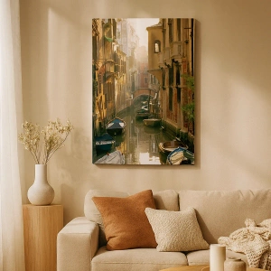 Maleriet "Venedigkanalen - Romantisk Rejse" er et fremragende valg til indretning, da det formidler en atmosfære af fred og elegance. Det vil se perfekt ud i en stue, et soveværelse eller et kontor og bringe harmoni og inspiration.