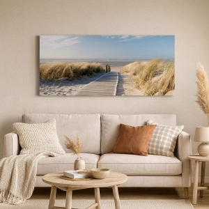 Motivet af en **træsti**, der fører gennem klitterne, symboliserer fred, rejser og nærhed til naturen. Det er det perfekte valg for dem, der ønsker at tilføre lidt feriestemning til deres interiør. Dette maleri dekorerer ikke kun, men inspirerer også drømme om rejser og afslapning.