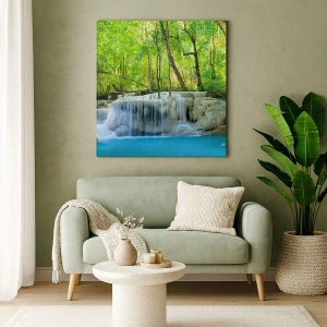 Vandfaldsmotivet omgivet af skov er et symbol på afslapning og ro. Det er et fremragende valg for dem, der ønsker at introducere lidt af natur og det eksotiske i deres interiør. Dette maleri kan også være en unik gave til naturelskere og smukke landskaber.