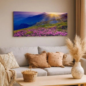 Lærredstryk - Billede på lærred - ... Og rundt omkring dufter det af fyrretræer og krydderurter - 90x30 cm