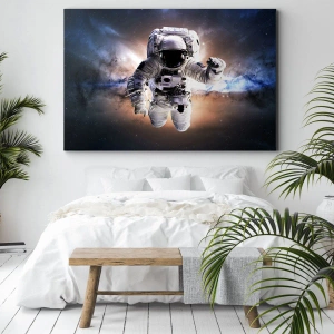 Lærredstryk - Billede på lærred - Astronaut i rummet - 70x50cm - Hilsner fra det ydre rum - Moderne vægdekoration til stue og soveværelse ARTTOR