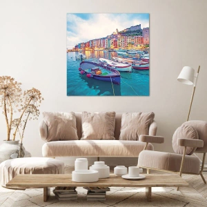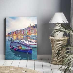 Lærredstryk - Billede på lærred - En farverig aften i havnen - 45x80 cm