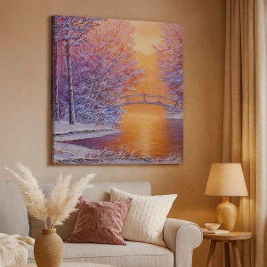 Lærredet er spændt op over rammen. Siderne og kanterne trykkes for at danne en fortsættelse af billedet. Maleriet er klar til at blive hængt op på væggen. Hvert produkt har en bøjle, der er fastgjort til rammen, og et samlesæt (skrue + dyvel).