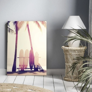 Lærredet er spændt op over rammen. Siderne og kanterne trykkes for at danne en fortsættelse af billedet. Maleriet er klar til at blive hængt op på væggen. Hvert produkt har en bøjle, der er fastgjort til rammen, og et samlesæt (skrue + dyvel).