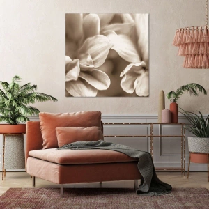 - Dette maleri forestiller et nærbillede af blomster i en delikat sepiatone. Perfekt til diskrete og elegante interiører. Lærredstrykket måler 70x50 cm.