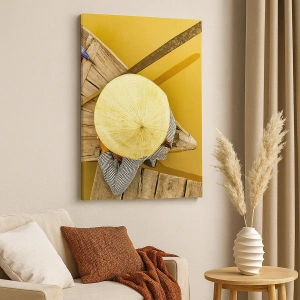 Lærredet er spændt op over rammen. Siderne og kanterne trykkes for at danne en fortsættelse af billedet. Maleriet er klar til at blive hængt op på væggen. Hvert produkt har en bøjle, der er fastgjort til rammen, og et samlesæt (skrue + dyvel).