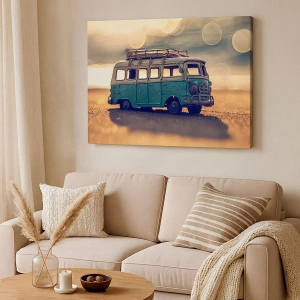 Lærredet er spændt op over rammen. Siderne og kanterne trykkes for at danne en fortsættelse af billedet. Maleriet er klar til at blive hængt op på væggen. Hvert produkt har en bøjle, der er fastgjort til rammen, og et samlesæt (skrue + dyvel).