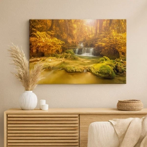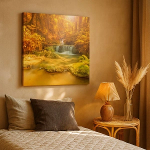 Lærredstryk - Billede på lærred - Skovkaskade i guld - 30x30 cm