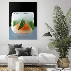 Vægbillede - Friskhed og kølighed - Frugt og blade frosset i klar is