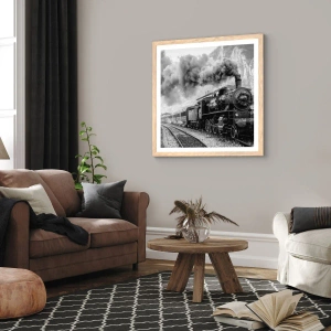 Plakat i ramme af lyst egetræ - Står på stationen... - 50x70 cm