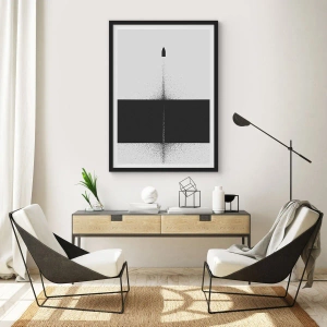- Plakaten "Minimalistisk Abstraktion" forestiller en raket mod en baggrund opdelt i kontrasterende sorte og grå sektioner. Det monokromatiske design understreger den moderne fornemmelse. Den leveres med en sort ramme.