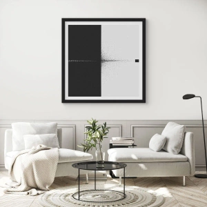 Plakat i sort ramme - Minimalistisk abstraktion med en raket på en delt baggrund - 50x70cm - Lige til sagen - Moderne vægdekoration til stue og soveværelse ARTTOR