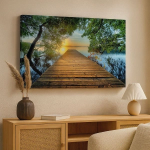 Lærredet er spændt op over rammen. Siderne og kanterne trykkes for at danne en fortsættelse af billedet. Maleriet er klar til at blive hængt op på væggen. Hvert produkt har en bøjle, der er fastgjort til rammen, og et samlesæt (skrue + dyvel).
