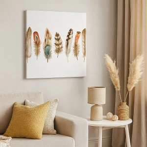 Lærredstryk - Billede på lærred - Variation med fjer - 50x70 cm