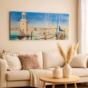 Lærredstryk - Billede på lærred - Solrig lagune - 100x40 cm