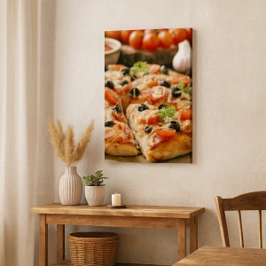 Lærredet er spændt op over rammen. Siderne og kanterne trykkes for at danne en fortsættelse af billedet. Maleriet er klar til at blive hængt op på væggen. Hvert produkt har en bøjle, der er fastgjort til rammen, og et samlesæt (skrue + dyvel).