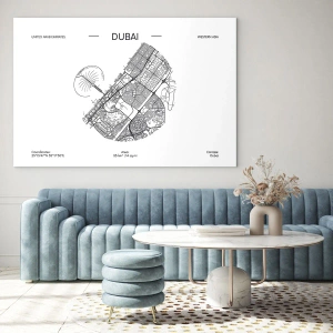 Maleriet Dubais anatomi er en sort-hvid grafisk komposition, der præsenterer et præcist kort over Dubai. Det er opretholdt i minimalismens ånd og imponerer med sin præcise detaljerigdom og elegante enkelhed.