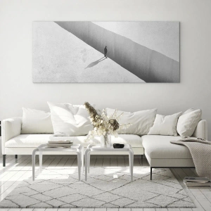 Billede på glas - En minimalistisk silhuet over en afgrund i et lyst rum - 70x50cm - Lys destination - Moderne vægdekoration til stue og soveværelse ARTTOR