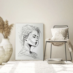 Vægbillede - Portræt i tanker - Sort-hvid skitse af en kvinde med lukkede øjne i en fin linje