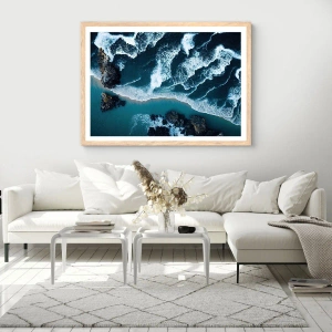 Plakat i ramme af lyst egetræ - Svøbt i bølger - 50x40 cm